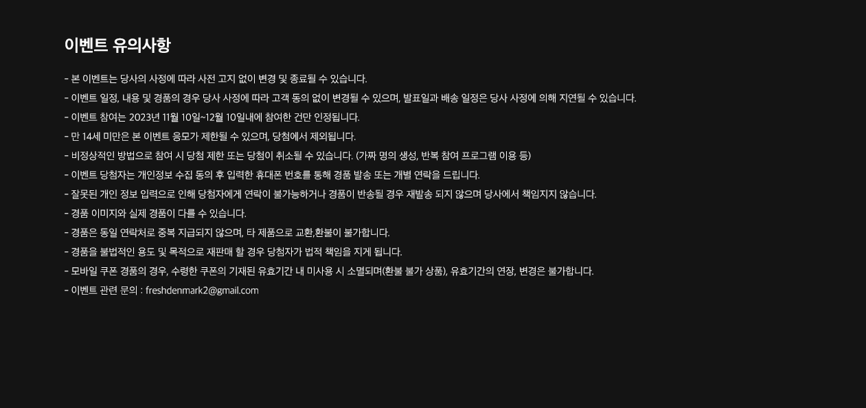 선택적인 개인정보 수집 및 이용에 동의하지 않을 권리가 있습니다. 동의하지 않아도 이벤트 참여가 가능합니다. 다만, 동의하지 않을 경우 관련 할인 정보, 이벤트 등의 혜택 정보 제공이 제한됩니다.